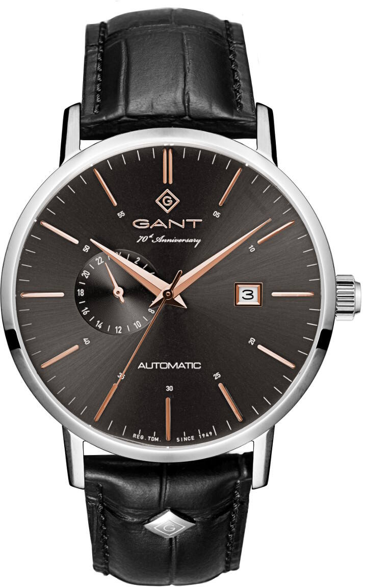Gant Park Hill Automatic G102002 -rannekello on Gantin 70-vuotisjuhlamalli. 43 mm leveä runko on valmistettu ruostumattomasta teräksestä ja sen takakansi on läpinäkyvä. 22 mm ranneke on puolestaan aitoa krokotiilikuvioitua nahkaa. Tummanharmaasta sunray-kellotaulusta löytyy päivyrin ja 24 h taulun lisäksi myös kaunokirjailtu "70th Anniversary" -teksti. Tässä mallissa on automaattikoneisto, joka lataa itsensä liike-energian avulla.