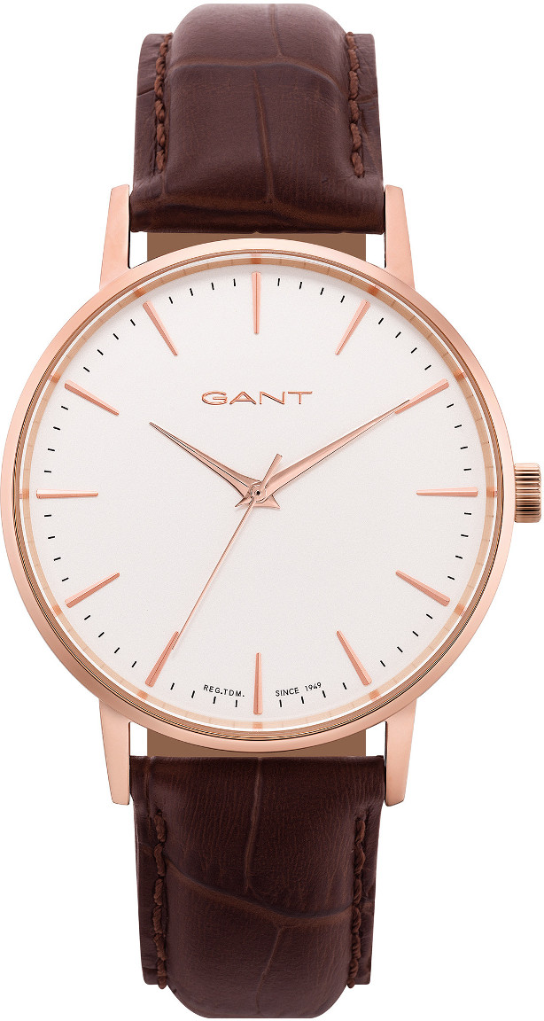 GANT Park Hill GT081002 on pukumiehen paras ystävä. Simppelin ulkoasun luovat aito ruskea nahkaranneke ja hillitty valkoinen kellotaulu. Punakullan värinen, 43 mm leveä runko on valmistettu ruostumattomasta teräksestä. Kellon sydämessä häärii luotettava japanilainen Miyota-koneisto. Rannekkeella leveyttä on 21 mm.