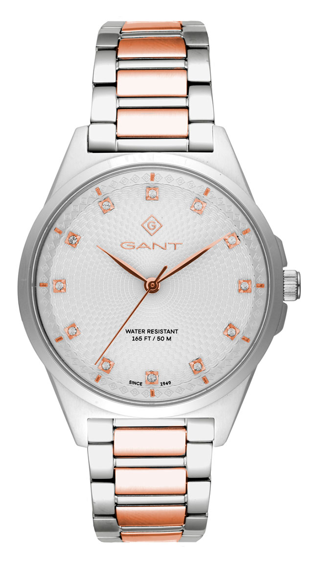 Gant Scarsdale G156003 -rannekellossa on upea yksityiskohtainen kellotaulu. Kellotaulun kuviointi on valkoisella pohjalla. Indeksit ovat merkattu Swarovskin kivillä, joita on siis yhteensä 12. Osoittimet ovat väriltään punakultaiset. Ranneke ja runko ovat valmistettu ruostumattomasta teräksestä. Rungon leveys on 38 mm ja väriltään se on hopeinen. Rannekeon väriltään punakulta-hopeinen. G156003-kellon vesitiiviysluokitus on 50m / 5atm, joten kello on rajoitetusti vesitiivis (uimista ei suositella). Gant-kelloilla on kahden vuoden takuu, ja ne toimitetaan valmistajan alkuperäisessä rasiassa.
