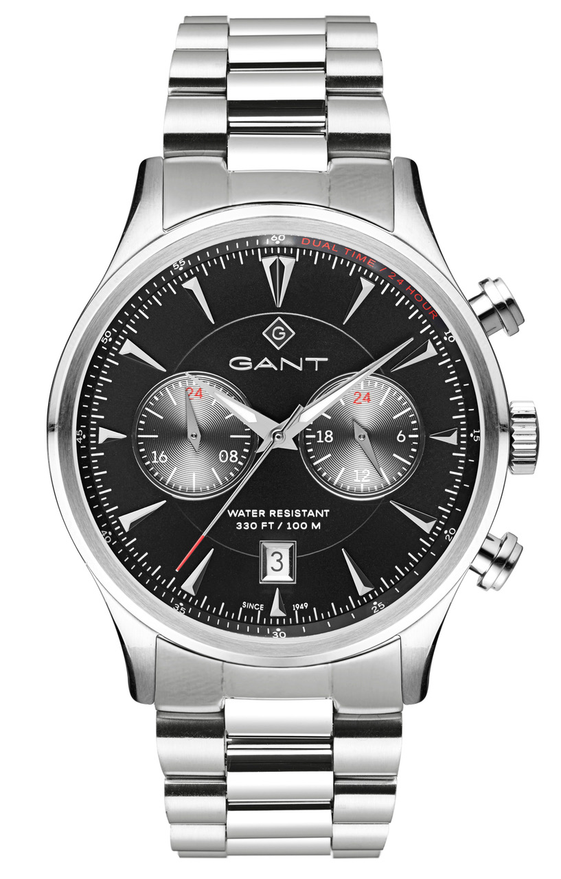 Gant Spencer G135001 on meriteemainen miesten kronografikello kaksivärisellä kellotaululla ja näyttävillä punaisilla yksityiskohdilla. Kellon teräsrunko on 43 mm leveä ja 12,8 mm paksu, ja kelloon on mahdollista asettaa kahden aikavyöhykkeen aika, ja siinä on myös 24 tunnin kello ja päivyri. 22 mm leveä teräsranneke on helppo pukea ranteeseen linkkulukon ansiosta. Gantin Spencer-kello kestää vettä 100 m saakka. Gant-kelloilla on kahden vuoden takuu, ja ne toimitetaan valmistajan alkuperäisessä rasiassa.