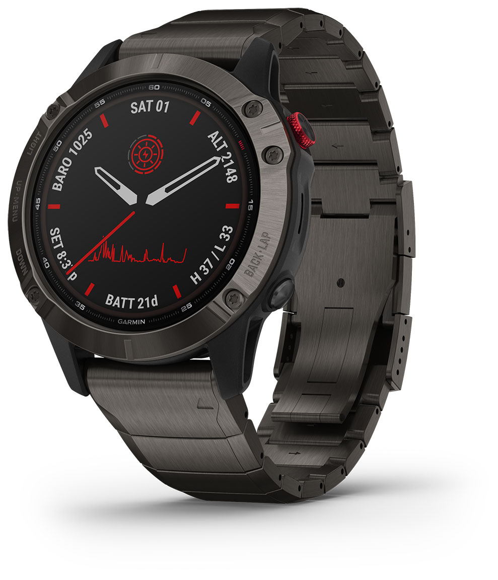 Garmin Fenix 6 Pro Solar Titanium Carbon Gray DLC with Titanium DLC älykello 010-02410-23 -älykello seikkailijoille, jotka eivät halua stressata akunkestosta