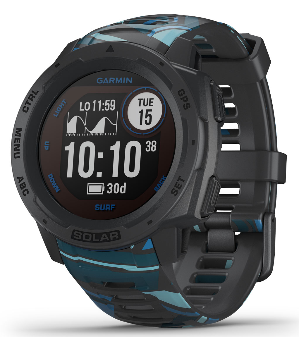 Uusi Garmin Instict Solar Surf -mallisto on kuin luotu meren ystäville, sillä tässä kellossa on uutena ominaisuutena surffaustila! Älykellossa on kuituvahvisteinen polymeerirunko, terävä ja tarkka kaksoisnäyttö, käytännöllinen muotoilu ja naarmuuntumaton, kemiallisesti karkaistu Corning® Gorilla® -lasi. Yhdysvaltain sotilasstandardin 810G mukaan rakennettu kello on räätälöity sopimaan ulkoilmaan lämmön-, iskun- ja vedenkestävyyden osalta.