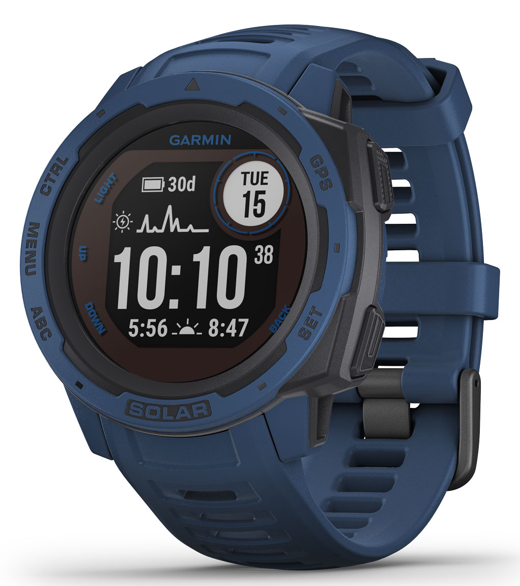 Garmin Instinct Solar Tidal Blue älykello 010-02293-01 GPS-kello käyttää osittain aurinkolatausta, joten sinun ei tarvitse ladata kelloa niin usein. Aurinkolatautuvan Power Glass™-kellolasin ja virrankulutuksen hallintatilan ansiosta akunkesto pidentyy jopa useilla viikoilla. Älykellossa on kuituvahvisteinen polymeerirunko, terävä ja tarkka kaksoisnäyttö, käytännöllinen muotoilu ja naarmuuntumaton, kemiallisesti karkaistu Corning® Gorilla® -lasi. Kellon monipuoliset anturit navigoivat ja aistivat ympäristön olosuhteita erittäin tarkasti. Syketietojen avulla voit seurata myös omaa aktiivisuuttasi ja hyödyntää esiladattuja suoritusprofiileja kunnon kohottamiseen. Kestävyydeltään Garmin Instinct on omaa luokkaansa. Laite täyttää Yhdysvaltain sotilasstandardin 810G lämmön-, iskun- ja vedenkestävyyden osalta. Monipuoliseen pakettiin kuuluvat tietenkin myös älykkäät ilmoitukset sekä yhteensopivuus Garmin Connect- ja Garmin Explore -palveluiden kanssa. Tämä malli on väriltään sininen.