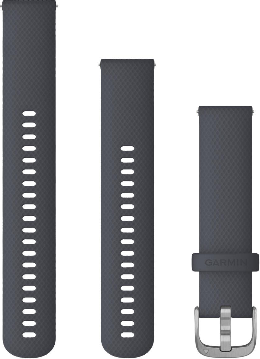 Garmin sininen Quick release -silikoniranneke 20mm 010-12932-10. Rannekkeen silikoniosa on sininen ja solki hopeanvärinen. Pakkaus sisältää rannekkeen. Kiinnitys tapahtuu pikajousinastoilla, joten työkaluja ei tarvita. Ranneke sopii ranteisiin ympärysmitaltaa välillä 125-218mm.