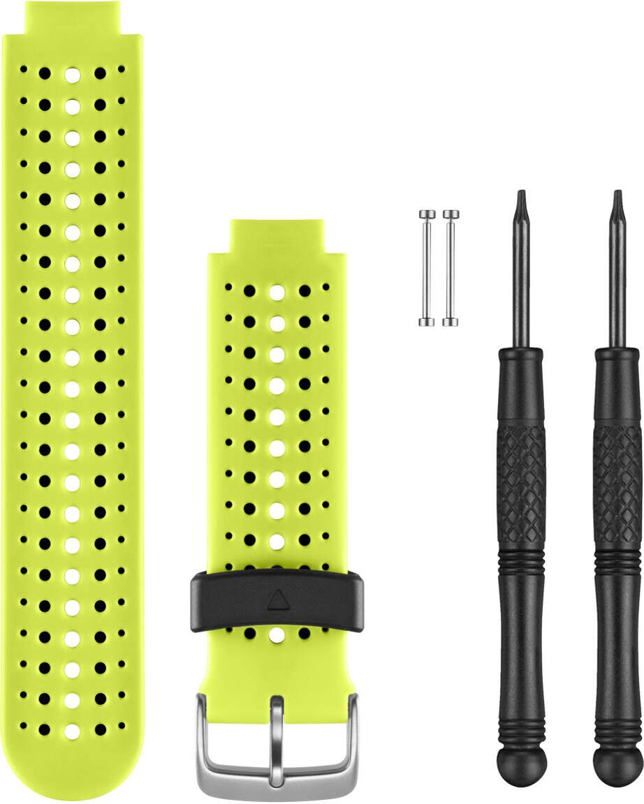 Garmin vaihtohihna Forerunner 230 010-11251-83 on keltainen ranneke Garmin laitteeseesi. Pakkaus sisältää rannekkeen, tapit ja vaihtotyökalun.