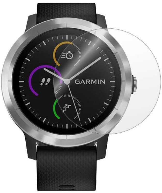 Garmin Vivoactive 3 näytönsuojalasi on kovuudeltaan 9H eli sitä on erittäin vaikea saada naarmuuntumaan. Lasi on lähes heijastamaton, todella kirkas ja siinä on optimaalinen läpinäkyvyys. Lasin paksuus on vain 0,3mm ja halkaisija 36 mm . Paketissa mukana lasi sekä märkä- ja kuivaliina näytön puhdistusta varten. Lasi liimataan näytön päälle poistamalla liiman puolelta suojakalvo ja asettamalla lasi alkuperäisen lasin päälle. Sopii Garmin Vivoactive 3 mallehin (HUOM! Ei sovi Vivoactive 3 Music -malleihin niiden kaareva lasin vuoksi.)