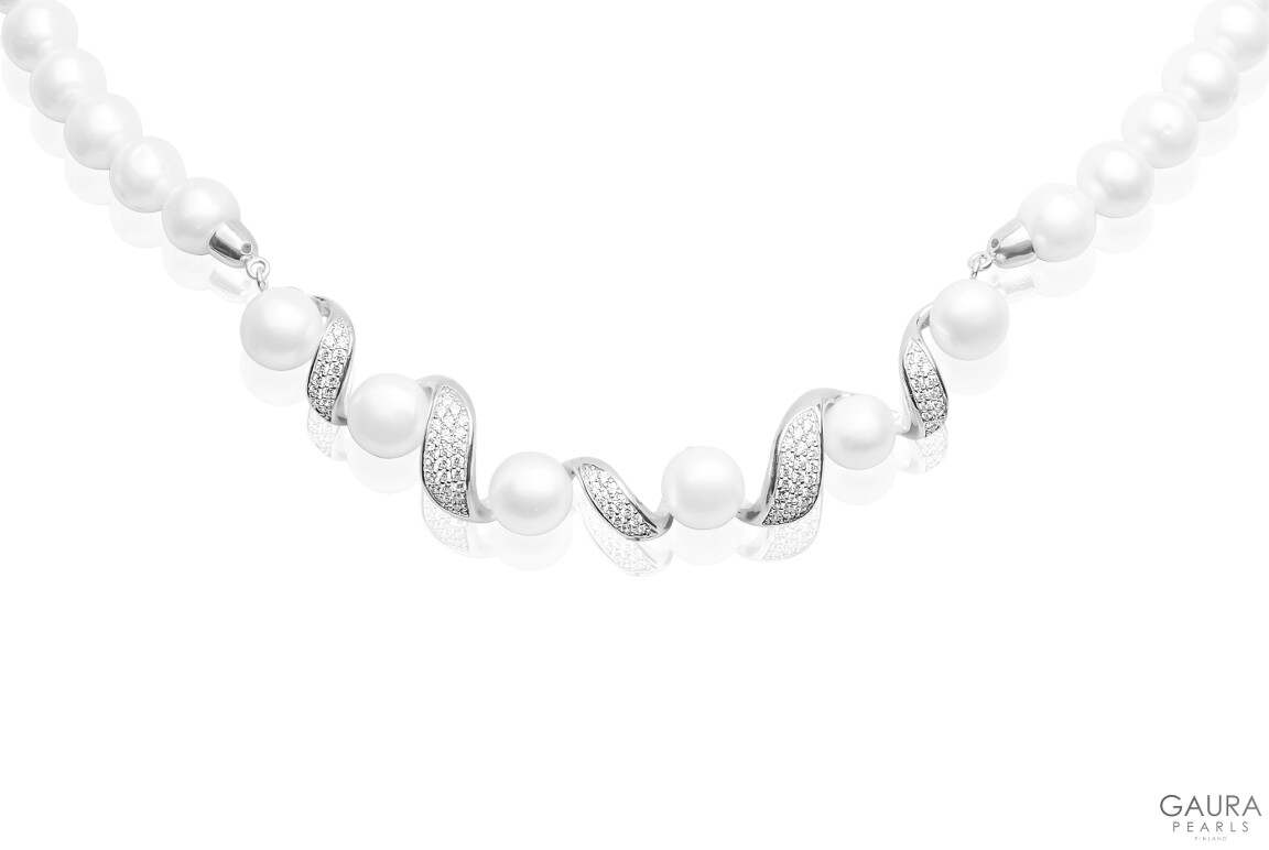 Gaura Pearls helminauhaan on yhdistetty näyttävää modernia designia. Helminauha sopii hyvin niin juhla- kuin hääpukeutumiseen. Säätövaran ansiosta helminauhan saa säädettyä juuri oikeaan kohtaan asusteen mukaan.