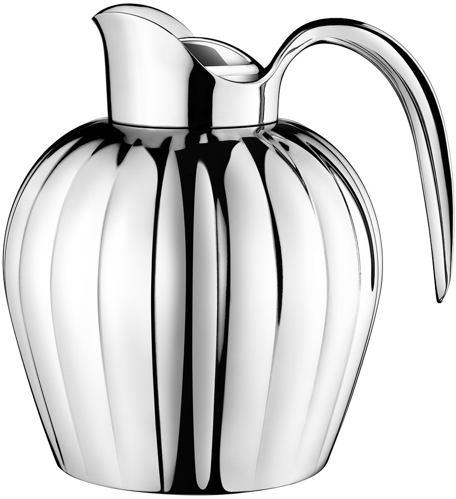 Vuonna 1938 Ruotsin Prinssi Sigvard Bernadotte suunnitteli hopeisen maitokannun, jonka perintö elää yhä vahvasti Georg Jensenin kannumallistoissa. Termoskannu julkaistiin Bernadotten kuolinvuonna 2002 ja yhdeksän vuotta myöhemmin päivänvalon näki tämä, pienempi 0,8 l malli. Uusin design on itse asiassa lähin muunnelma alkuperäisen maitokannun tyylistä. Teräksinen kannu pitää juomat lämpimänä vähintään kuusi tuntia. Kahva ja kierrettävä kansi on päällystetty kromilla. Kannun sisäpuoli estää tehokkaasti kahvin ja teen maun tarttumisen sen pintaan. Mitat 189 x 188 mm.