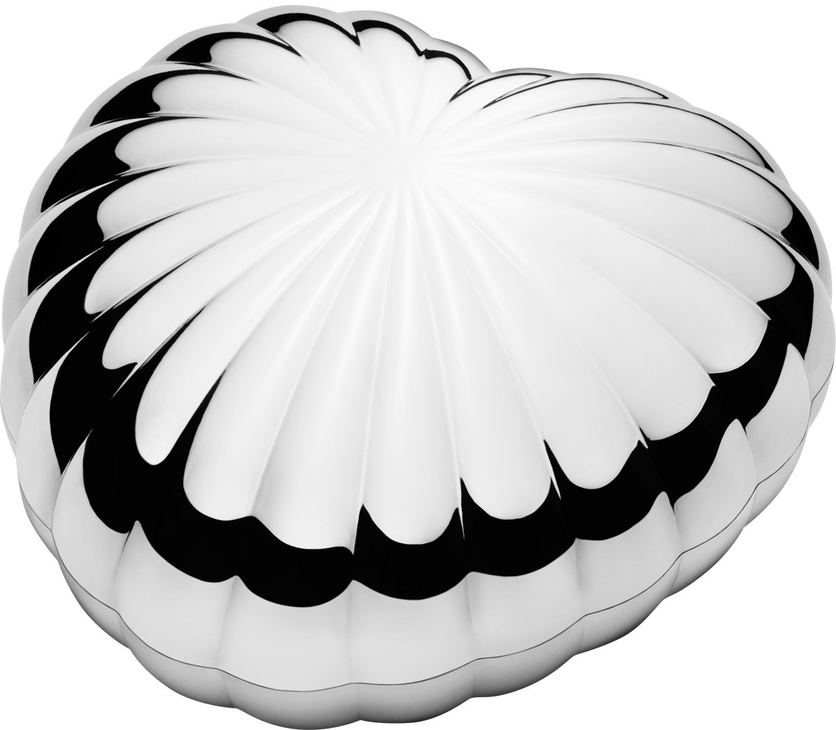 Georg Jensen Legacy Heart Bonbonniere -rasiaan voit säilöä esim. herkkuja, koruja, avaimia tai muita pikkuesineitä. Muotoilunsa ansiosta rasia on täydellinen lahjaidea, sillä se suorastaan pyytää tulla ojennetuksi lahjansaajalle henkilökohtaisesti. Jo rasian avaaminen itsessään on miellyttävä kokemus. Legacy Heart Bonbonniere on valmistettu kromilla päällystetystä sinkkiseoksesta ja sen mitat ovat 120 x 55 x 121 mm. Hää- tai ystävänpäivään tässä on takuuvarma voittaja. Saatavilla myös ovaalinmuotoisena.