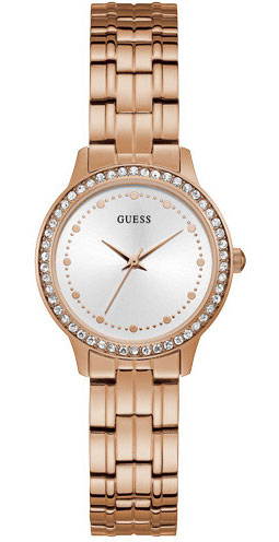 GUESS Chelsea W1209L3 Rose Gold -rannekello ei tee itsestään suurta numeroa, mutta täydentää upeasti jokaista vaatekaapistasi löytyvää asua. Siisti, teräksinen muotoilu ja siron naisellinen profiili luovat yhdessä kerrassaan vaikuttavan kokonaisuuden. Zirkonioin koristeltu kehä reunustaa hillityn valkoista kellotaulua niin ikään kauniisti. Kellon rungon halkaisija on 31 mm ja rannekkeen leveys 14 mm. Saatavilla myös kullan ja hopean sävyissä.