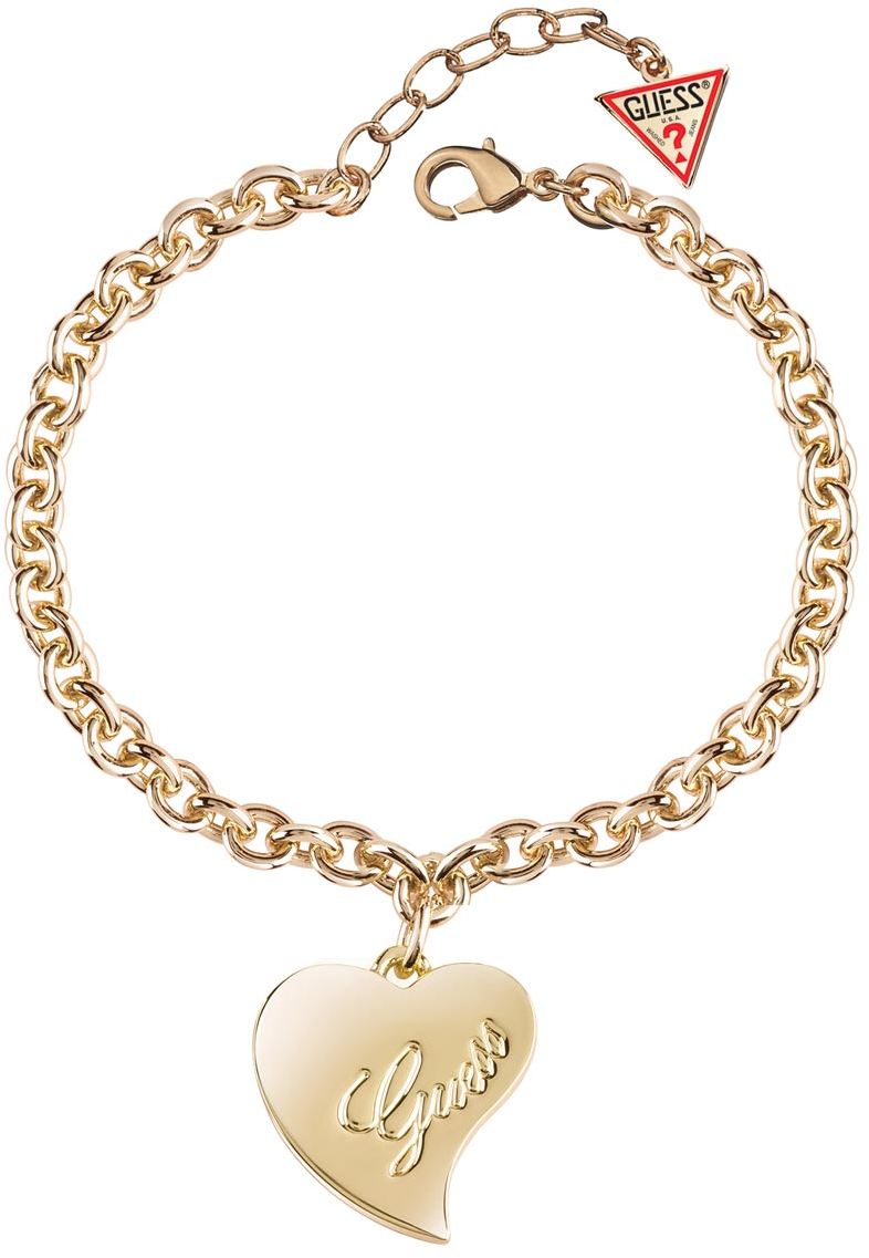 GUESS Love rannekoru UBB28095-S vetää puoleensa. Ruostumattomasta teräksestä valmistettu ketju on pituudeltaan 15-18,5 cm ja sen kyydissä roikkuu kaunis sydämenmuotoinen laatta. Koru toimitetaan valmistajan alkuperäisessä pakkauksessa. Saatavilla myös hopeanvärisenä sekä pidemmässä muodossa kaulakoruna.
