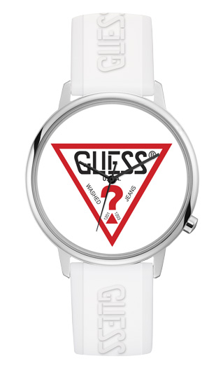 Guess Originals Hollywood V1003M2-rannekello on saanut inspiraationsa Guessin vintage-mallistosta. Valkoista kellotaulua koristaa Guessin alkuperäinen logopainatus, ja kellotaulua ympäröi 42 mm:iä leveä hopeanvärinen ruostumattomattomasta teräksestä valmistettu runko. Rannekkeen kiinnityskohdan leveys on 20 mm, ja rannekkeessa on pehmeän silikoninen pinta. GUESS-kelloilla on 2 vuoden takuu, ja ne toimitetaan valmistajan alkuperäisessä rasiassa.
