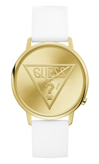 Guess Originals VM1023M1-rannekello on saanut inspiraationsa Guessin vintage-mallistosta. Näyttävässä kellossa on suuri 42 mm:n levyinen kullanvärinen runko, ja sunray-kellotaulussa on Guessin logopainatus. Valkoinen pelkistetty ranneke luo kontrastia ja on miellyttävä käyttää. Rannekeen kiinnityskohdan leveys on 20 mm, ja se on valmistettu pehmeästä silikonista. GUESS-kelloilla on 2 vuoden takuu, ja ne toimitetaan valmistajan alkuperäisessä rasiassa.