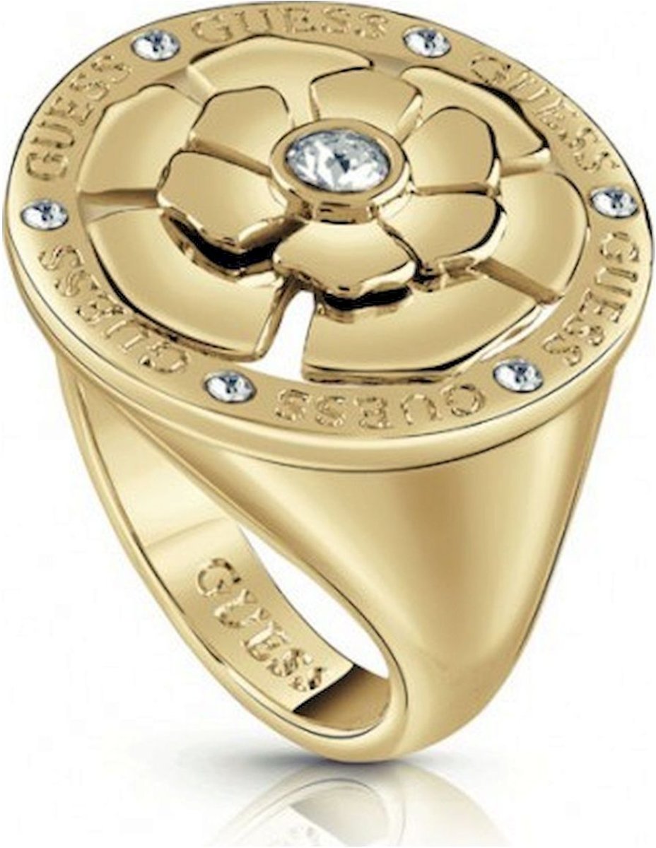 GUESS Peony sormus UBR79065 on valmistettu kullan väriseksi pinnoitetusta ruostumattomasta teräksestä ja siinä hohtavat kirkkaat zirconia korukivet. Sormuksen päälly puolta koristaa pioni. Sormusta on saatavilla kahta eri kokoa. GUESS-korut toimitetaan valmistajan alkuperäisessä pakkauksessa.