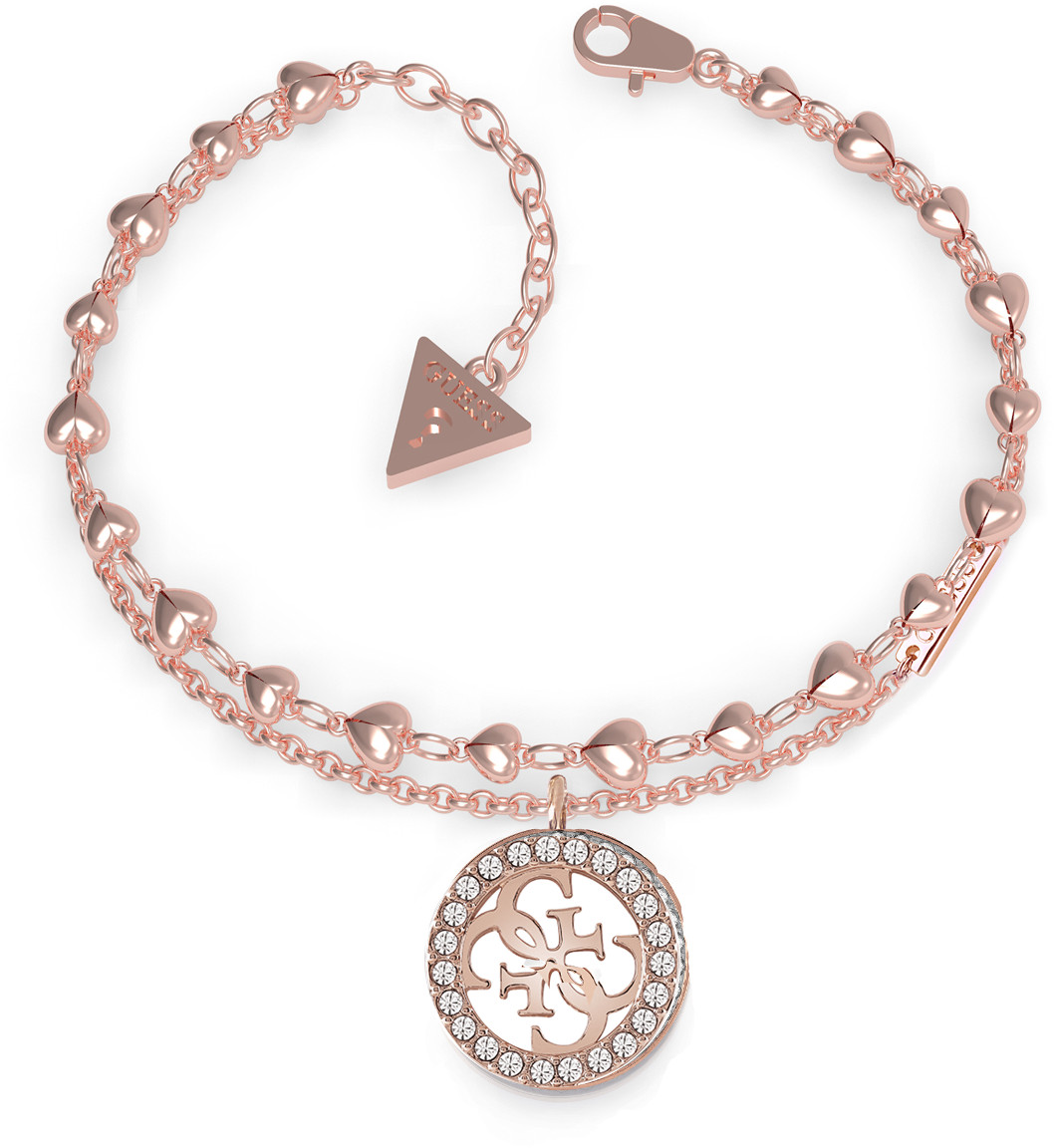 Aurinkoinen GUESS Tropical Sun -mallisto vie sinut suorinta tietä tropiikin lämpöön! Tämä punakullan värinen UBB78027-S -rannekoru on valmistettu ruostumattomasta teräksestä ja sen pituus on helposti säädettävissä. Guessin 4G-logoksi muotoiltua helaa kiertävät kirkkaat zirkoniat. Toimitus valmistajan alkuperäisessä pakkauksessa.