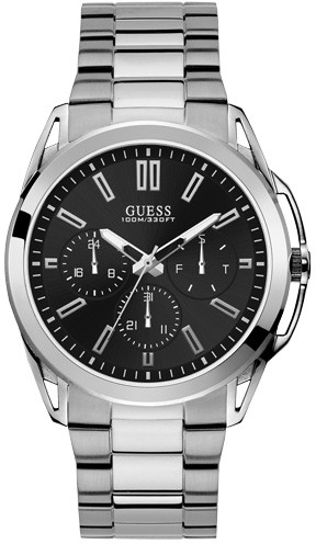 GUESS Vertex W1176G2 on jokamiehen multifunction-kello, josta näet yhdellä silmäyksellä sekä kellonajan, viikonpäivän että päivämäärän. Tunti- ja minuuttiviisarit luminoituvat pimeässä taaten vaivattoman käyttökokemuksen vuorokauden ympäri. Kello on valmistettu ruostumattomasta teräksestä. Rungon halkaisija on 47 mm ja rannekkeen leveyskin jämäkät 24 mm. Vertex-mallisto on lisäksi uimatiivis.