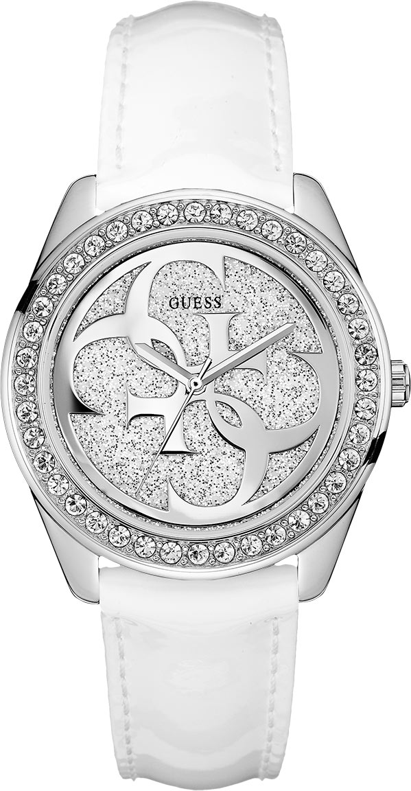 Guess W0627L4 G Twist on edullinen kimalteleva Guess kello.Taulun ja kellotaulun reunuksen korukivet luovat näyttävää kimalletta kelloon. Nimensä mukaisesti Guessin G:tä on taulussa käännetty ja sillä on luotu tyylikäs kuvio. Rannekkeen leveys kiinnityskohdasta on 20mm. Kellon rungon leveys on 40mm ja paksuus 9mm. Guess- kelloille myönnetään 2 vuoden takuu ja ne toimitetaan valmistajan alkuperäisessä rasiassa.