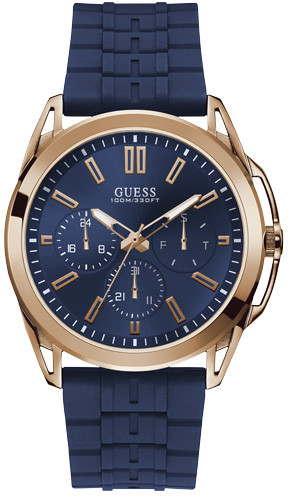 Mukavalla silikonirannekkeella varustettu GUESS W1177G4 Vertex on jokamiehen multifunction-kello, josta näet yhdellä silmäyksellä sekä kellonajan, viikonpäivän että päivämäärän. Tunti- ja minuuttiviisarit luminoituvat pimeässä taaten vaivattoman käyttökokemuksen vuorokauden ympäri. Kello on valmistettu ruostumattomasta teräksestä. Rungon halkaisija on 47 mm ja rannekkeen leveyskin jämäkät 24 mm. Vertex-mallisto on lisäksi uimatiivis.