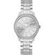 Guess W1280L1-rannekellossa on hopeanvärinen näyttö, jossa on 1980-luvulle tyypilliset viivamaiset, minimalistiset, miltei jopa maskuliiniset indeksit ja 3D-tekniikalla painettu Guessin logo. Kellon kehään on upotettu kristalleja ja logopainatus jatkuu kellon teräsrannekkeessa. Rungon leveys on 38 mm, ja rannekkeen kiinnityskohdan leveys on 10 mm. GUESS-kelloilla on 2 vuoden takuu, ja ne toimitetaan valmistajan alkuperäisessä rasiassa.