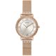 Ruusukullansävyinen Guess W1289L3-korukello on siro ja näyttävä. Ranneke on mesh-punosta, joka on helppo säätää juuri ranteeseen sopivaksi, ja kellon taulussa on yksinkertaiset roomalaiset indeksit ja kristallikoristelu. Kellotaulu on kupera. Rungon leveys on 35 mm ja rannekkeen leveys on 15 mm.GUESS-kelloilla on 2 vuoden takuu, ja ne toimitetaan valmistajan alkuperäisessä rasiassa.
