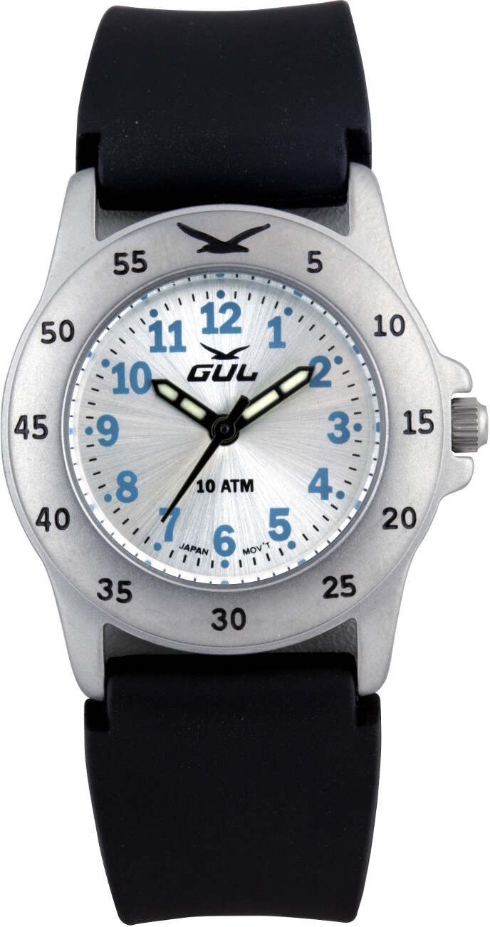 GUL Micro Silicone 4177007 Silver on suunniteltu lapsille. Kellossa on hopeanhohtoinen kellotaulu sinisillä numeroilla, silikoniranneke ja kellon kestää vettä 100 metriin saakka. Runko on valmistettu ruostumattomasta teräksestä ja takakansi on titaania, joten kello sopii hyvin myös herkkäihoisille. Rungon leveys on 28 mm ja paksuus 8,5 mm. Rannekkeen leveys on 16 mm ja pituus 13-18 cm. Koneistona kellossa on Miyota 2035. Laadukkaille-Gul rannekelloille myönnetään kahden vuoden takuu ja se toimitetaan valmistajan alkuperäisessä rasiassa.
