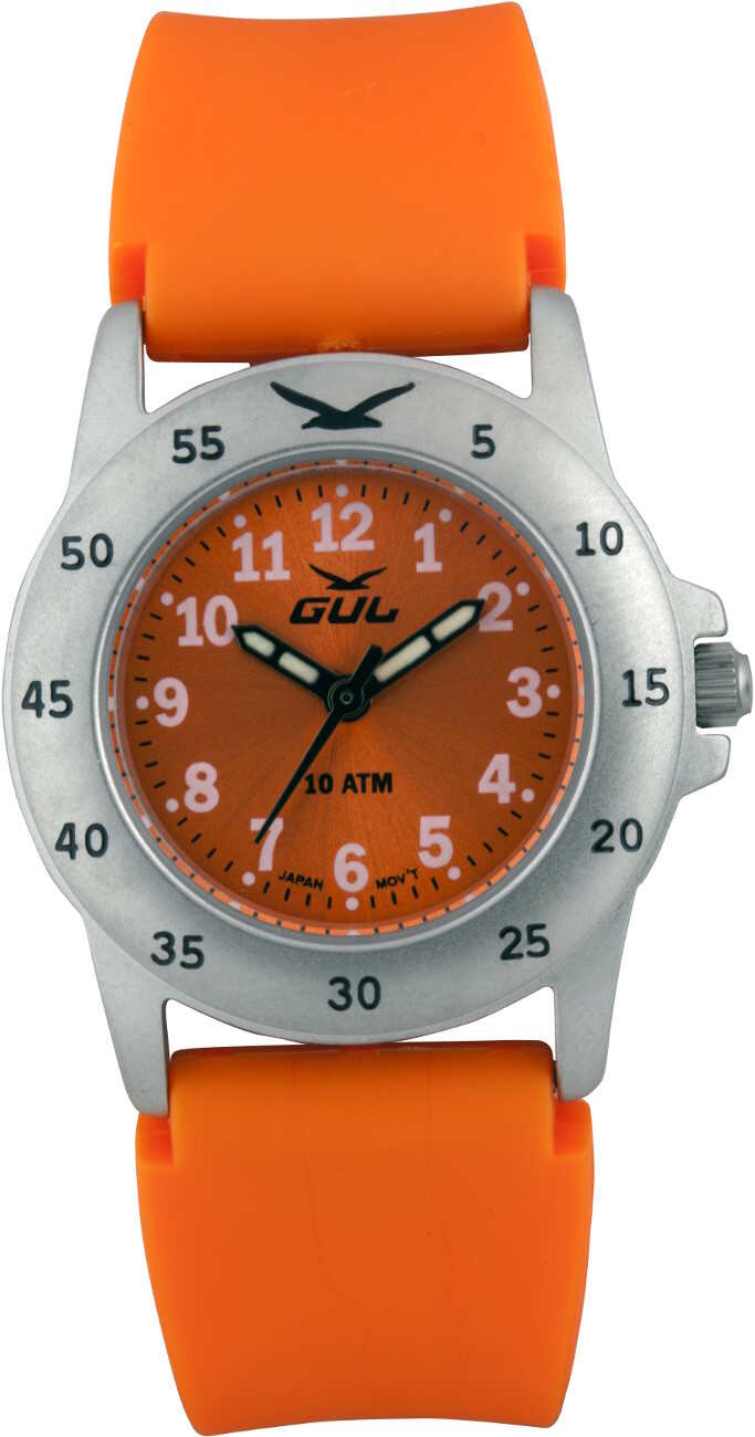 GUL Micro Silicone 4177021 Orange-rannekello on suunniteltu lapsille. Kellossa on oranssi kellotaulu ja silikoniranneke, ja runko on valmistettu ruostumattomasta teräksestä ja takakansi on titaanista, jonka vuoksi kello sopii herkällekin iholle. Rungon leveys on 28 mm ja paksuus 8,5 mm, rannekkeen pituus on 13-18 cm ja paksuus 16mm. Kellossa on laadukas Miyota 2035-koneisto ja kello kestää vettä 1000 m saakka. Gul-rannekelloilla on kahden vuoden takuu, ja ne toimitetaan valmistajan alkuperäisessä rasiassa.