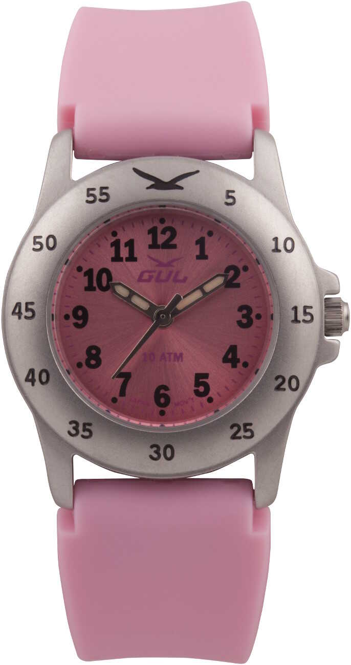 GUL Micro Silicone 4177189 Pink-rannekello on suunniteltu lapsien leikkeihin. Kellossa vaaleanpunainen kellotaulu ja silikoniranneke, ja runko on valmistettu ruostumattomasta teräksestä ja takakansi on titaanista, jonka vuoksi kello sopii herkällekin iholle. Rungon leveys on 28 mm ja paksuus 8,5 mm, rannekkeen pituus on 13-18 cm ja paksuus 16mm. Kellossa on laadukas Miyota 2035-koneisto ja kello kestää vettä 1000 m saakka. Gul-rannekelloilla on kahden vuoden takuu, ja ne toimitetaan valmistajan alkuperäisessä rasiassa.