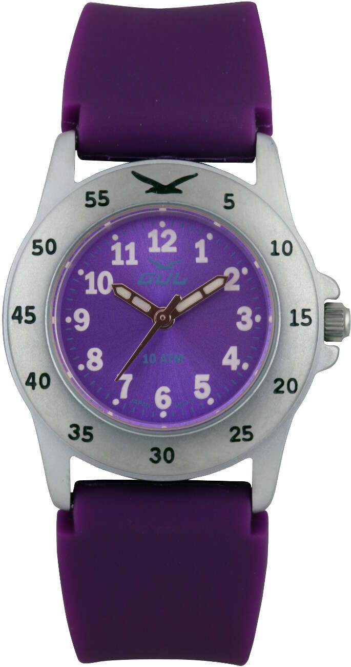 GUL Micro Silicone 4177260 Purple on suunniteltu lapsille. Kellossa on lila kellotaulu, silikoniranneke ja kellon kestää vettä 100 metriin saakka. Runko on valmistettu ruostumattomasta teräksestä ja takakansi on titaania, joten kello sopii hyvin myös herkkäihoisille. Rungon leveys on 28 mm ja paksuus 8,5 mm. Rannekkeen leveys on 16 mm ja pituus 13-18 cm. Koneistona kellossa on Miyota 2035. Laadukkaille-Gul rannekelloille myönnetään kahden vuoden takuu ja se toimitetaan valmistajan alkuperäisessä rasiassa.