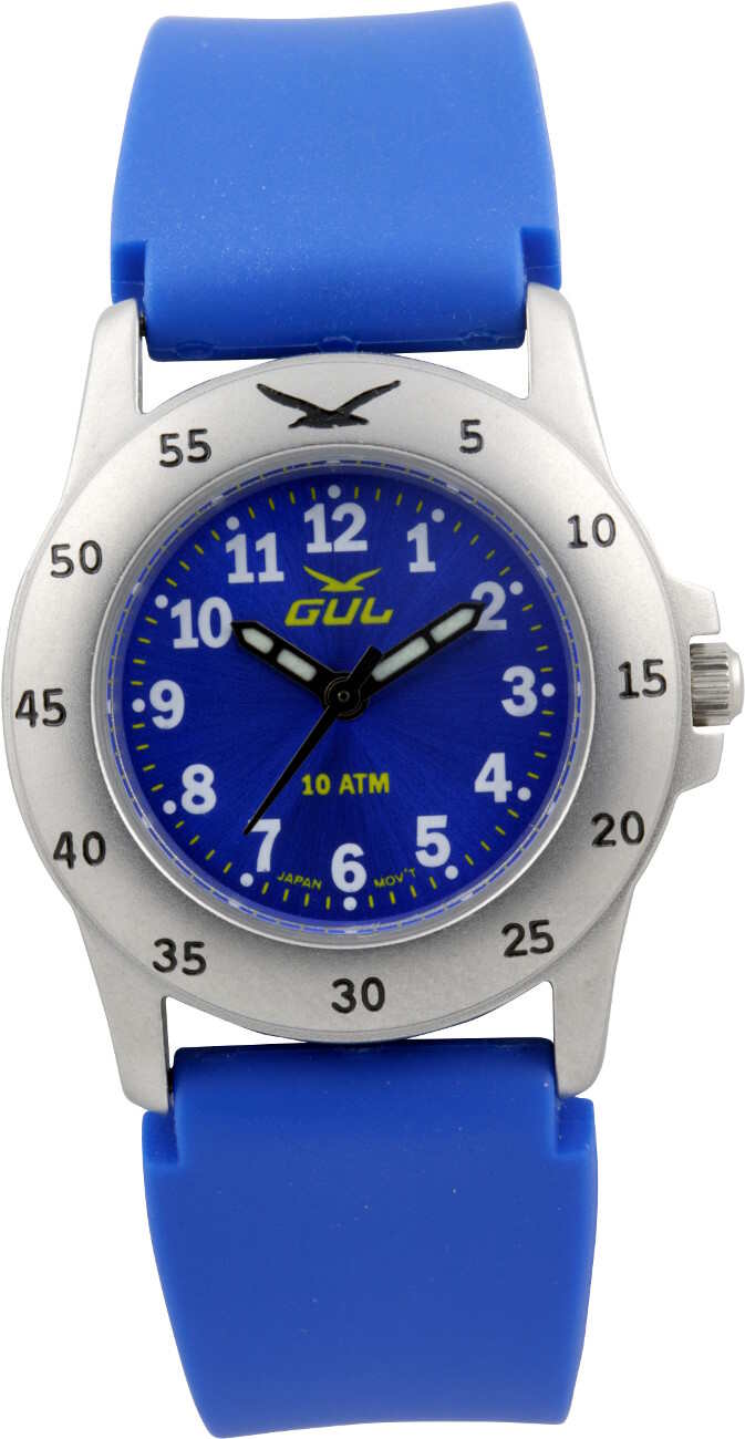 GUL Micro Silicone 4177293 Blue-rannekello on suunniteltu lapsille. Kellossa on sininen kellotaulu ja silikoniranneke, ja runko on valmistettu ruostumattomasta teräksestä ja takakansi on titaanista, jonka vuoksi kello sopii herkällekin iholle. Rungon leveys on 28 mm ja paksuus 8,5 mm, rannekkeen pituus on 13-18 cm ja paksuus 16mm. Kellossa on laadukas Miyota 2035-koneisto ja kello kestää vettä 1000 m saakka. Gul-rannekelloilla on kahden vuoden takuu, ja ne toimitetaan valmistajan alkuperäisessä rasiassa.