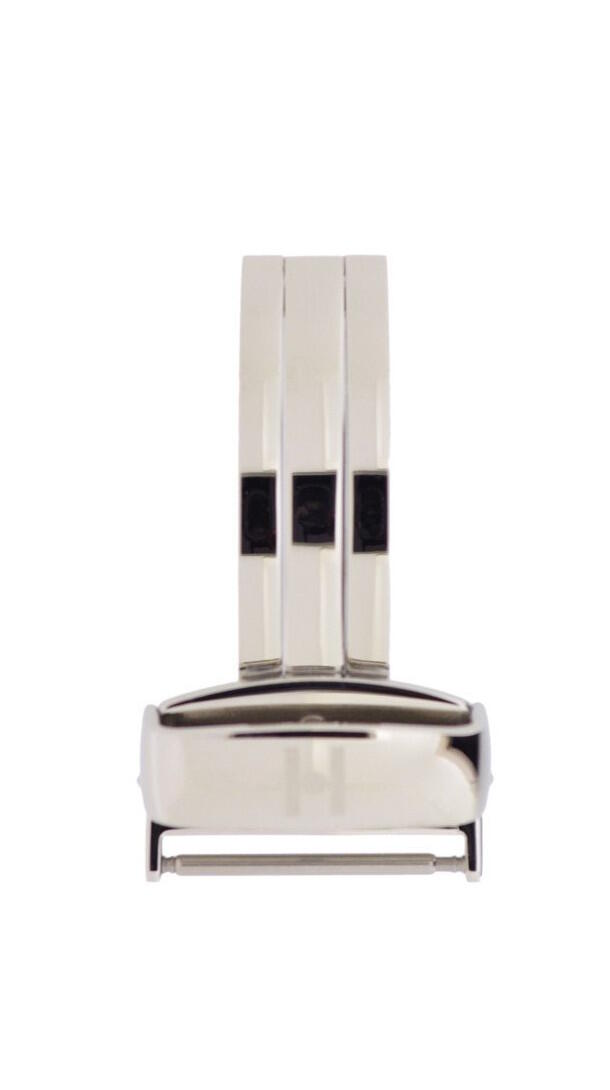 Hirsch Sport linkkulukko hopeanvärinen BC 1009 2. Tämä linkkulukko on valmistettu vastaavien korkeiden standardien mukaan, mitä Hirsch käyttää myös rannekkeidensa valmistuksessa. Linkkulukko sopii useisiin nahkarannekkeisiin. Linkkulukko on valmistettu ruostumattomasta teräksestä. Lukossa on myös Hirsch logo. Mukana tulee myös jousinasta kiinnitystä varten. Lukon korkeus on 3,7mm eli tätä paksummat rannekkeet eivät sovellu tähän lukkoon. Lukkoa on saatavilla neljää eri kokoa: 16 mm, 18 mm, 20 mm sekä 22 mm.