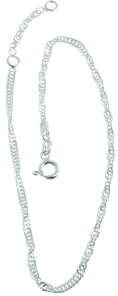 Kaunis ja siro nilkkaketju singapore-ketjulla. Ketjun muotoilu ja kierteisyys tuo muuten hentoon ja yksinkertaiseen nilkkakoruun kivaa ilmettä. Singapore-ketjun leveys on 2,5mm ja koru on valmistettu laadukkaasta 925 sterling-hopeasta. Nilkkaketjun pituutta voi säätää 23-25 cm välillä.