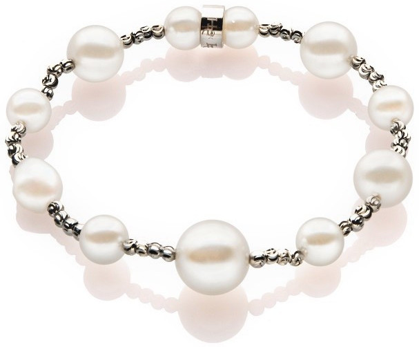 Kaikki House of Elliott -tuotteet ovat aitoa suomalaista designia. Tämä rannekoru on valmistettu sterling-hopeasta ja seashell-helmistä, jotka ovat kooltaan 8-12 mm. Elastisuutensa ansiosta koru sopii mainiosti kaikenkokoisiin ranteisiin. Toimitus valmistajan alkuperäisessä lahjapussissa.