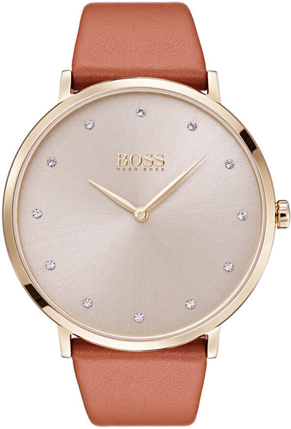 Hugo Boss 1502411 Jillian -kellon kellotauluun on istutettu säikyviä kiviä indekseiksi. Ruskea nahkaranneke ja kullanvärinen runko luovat tyylikkään kokonaisuuden. Kellon rungon leveys on 40mm ja rannekkeen kiinnityskohdan leveys 20mm. Rungon paksuus 7mm. Hugo Boss kelloille myönnetään 2 vuoden takuu ja ne toimitetaan valmistajan alkuperäisessä rasiassa postikuluitta!