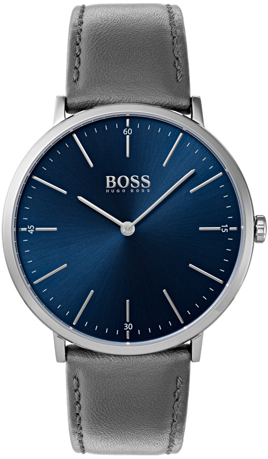 Hugo Boss 1513539 Horizon on pelkistetty mutta todella tyylikäs miesten kello. Tässä mallissa on sininen kellotaulu ja muodikas harmaa nahkaranneke. Rannekkeen leveys kiinnityskohdasta on 20 mm. Ruostumattomasta teräksestä valmistetun rungon leveys on 40 mm ja paksuus 6,5 mm. Hugo Boss kellot toimitetaan valmistajan alkuperäisessä rasiassa ja niille myönnetään 2 vuoden takuu.