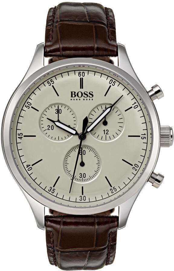 Hugo Boss 1513544 Companion -kellon design on hyvin klassinen. Kellossa on harmaa kellotaulu, hopeanvärinen runko ja ruskea nahkaranneke. Ominaisuutena ajanotto. Kellon rungon leveys on 44mm ja rannekkeen kiinnityskohdan leveys 20mm. Rungon paksuus 11mm. Hugo Boss kelloille myönnetään 2 vuoden takuu ja ne toimitetaan valmistajan alkuperäisessä rasiassa postikuluitta!