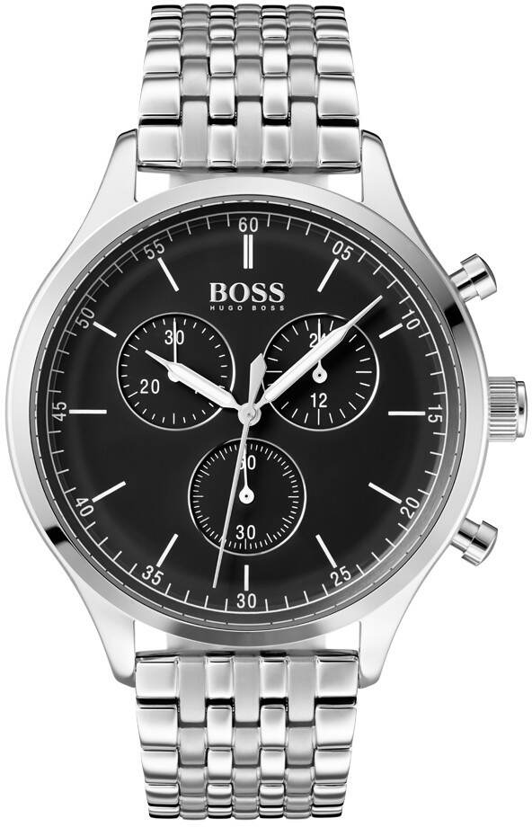 Hugo Boss 1513652 Companion -kello on tyylitietoisen varma valinta. Kellossa on musta kellotaulu ja tyylikäs teräsranneke. Ominaisuuksina kellosta löytyy ajanotto sekä 24h näyttö. Kellon rungon leveys on 43mm ja paksuus 10.5mm. Rannekkeen leveys kiinnityskohdasta on 20mm. Hugo Boss -kelloille myönnetään 2 vuoden takuu ja ne toimitetaan valmistajan alkuperäisessä rasiassa.