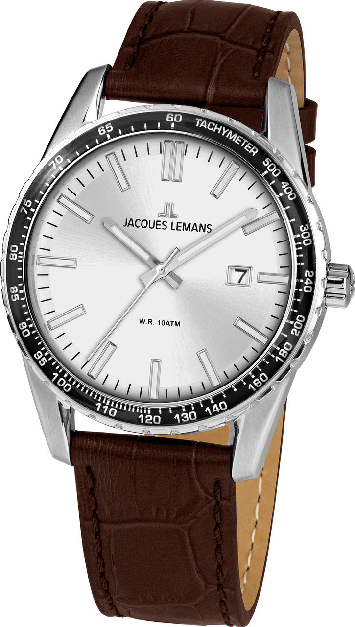 Jacques Lemans Liverpool 1-2022B-kellossa yhdistyy perinteinen kellomuotoilu sporttiseen ilmeeseen. Kellon 40 mm:iä leveä on valmistettu ruostumattomasta teräksestä, ja kellotaulua kehystää näyttävä musta kellokehä. Valkoisen kellotaulun metallireunaiset osoittimet ja indeksit on luminoitu, ja taulussa on myös päivyri. Pehmeä tummanruskea krokotiilikuvioitu ranneke on aitoa nahkaa. Kellotaulua suojaa kestävä crystex-mineraalilasi, ja kello on vesitiivis 100m saakka. Jacques Lemans kelloilla on 2 vuoden takuu, ja ne toimitetaan valmistajan alkuperäisessä rasiassa.