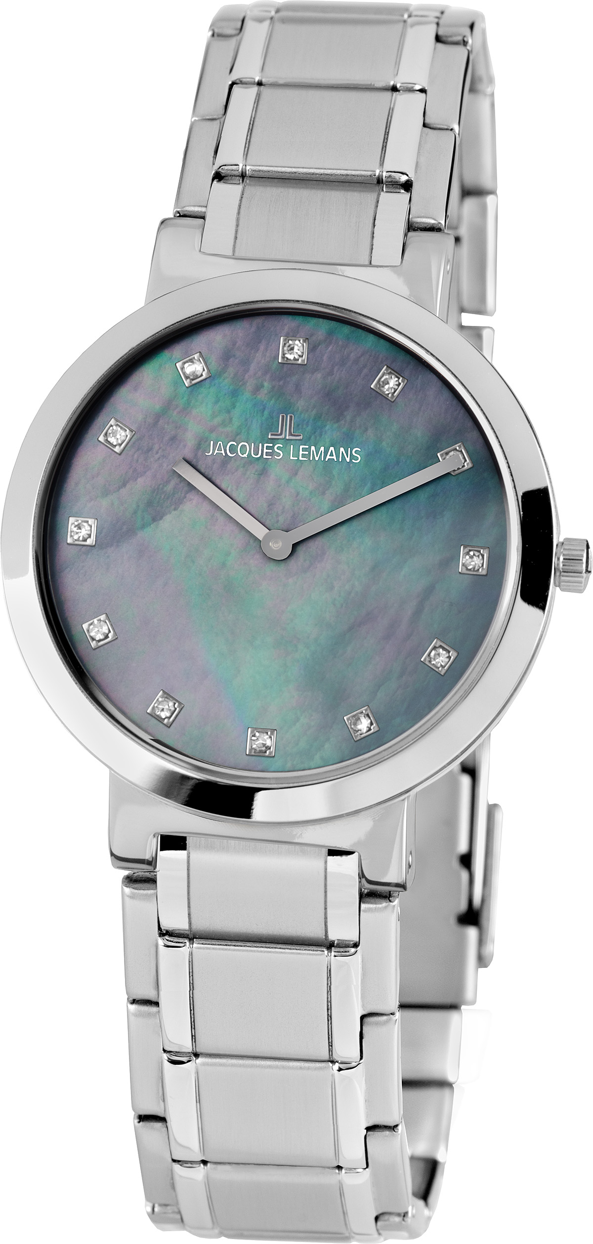 Täysin ruostumattomasta teräksestä valmistettu Jacques Lemans Milano 1-1998D on klassinen kellomalli, jossa on selkeä ja tyylikäs muotokieli. Kellossa on hopeanväriset osoittimet ja kaunis tumma helmiästausta, jota koristaa ylelliset Swarowskin kristallit. Kellotaulua suojaa crystex-mineraalilasi. Jacques Lemans-kelloilla on 2 vuoden takuu, ja ne toimitetaan valmistajan alkuperäisessä rasiassa.