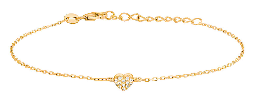 Joanli Nor ALMANOR rannekoru kulta 845 059-3 on ihana sydänrannekoru! Pieni kullattu sydän on 5 mm leveä ja koristeltu kirkkailla zirkonioilla. Ketjun pituus on 17 cm (3 cm säätövaralla). Joanli Nor -korut ovat valmistettu aidosta hopeasta ja ne toimitetaan valmistajan alkuperäisessä lahjarasiassa.