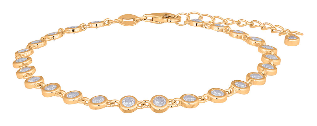 Joanli Nor FANNYNOR rannekoru kulta 845 093-3 on näyttävä kullattu koru, jossa on kirkkaita zirkonioita. Ketjun pituus on 17 cm (3 cm säätövaralla). Joanli Nor -korut valmistetaan aidosta hopeasta ja ne toimitetaan valmistajan alkuperäisessä lahjarasiassa.