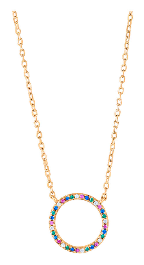 Joanli Nor FILUCANOR 245 149-3 on kaunis kullattu kaulakoru, jossa on värikkäillä zirkonioilla koristeltu rengas. Ketjun pituus on 42 cm (3 cm säätövaralla). Joanli Nor -korut valmistetaan aidosta hopeasta ja ne toimitetaan valmistajan alkuperäisessä lahjarasiassa.