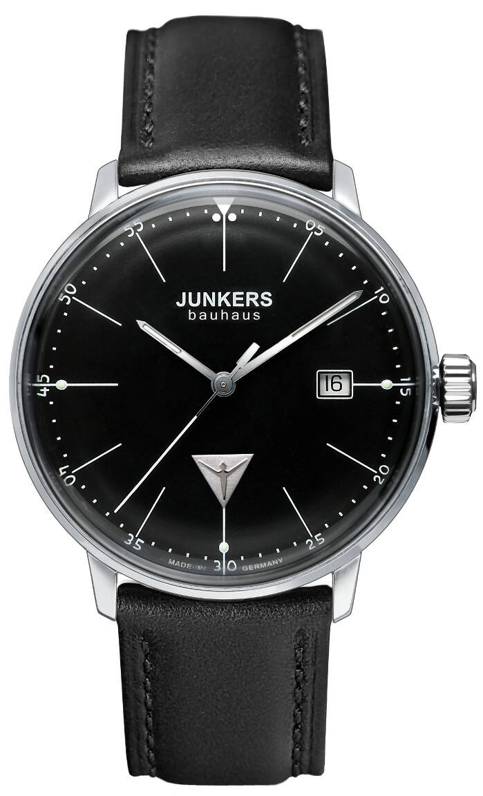 Junkers Bauhaus Ronda515 6070-2 -rannekello on lentävää retrodesignia etsivälle loistovalinta! Kellon runko on valmistettu hopean värisestä ruostumattomasta teräksestä ja musta ranneke on aitoa nahkaa. Lisäksi kellon viisarit hohtavat pimeässä! Junkers -kellot ovat valmistettu Saksassa, saksalaisella työllä sekä vähintään 50% käytetyistä materiaaleista ja osista on valmistettu Saksassa! Kellossa on laadukas sveitsiläinen Ronda515 -paristokoneisto. Ominaisuutena kellosta löytyy myös päivyri. Kellon rungon leveys on 40mm ja paksuus 10mm. Kellon paino on 45g. Junkers -kelloille myönnetään 2 vuoden takuu ja ne toimitetaan valmistajan alkuperäisessä rasiassa.