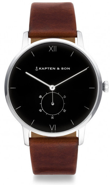 Puhtaan yksinkertaiset linjat ja sulava muotoilu ovat Kapten & Son Heritage -malliston tunnuspiirteitä. Kellot edustavat saksalaista Bauhaus-tyyliä, joka on toiminut modernin suunnittelun innoittajana jo 1900-luvun alkupuolelta saakka. Tämä mustalla kellotaululla ja hienostuneella 20 mm nahkarannekkeella varustettu Silver/Black/Brown Leather -malli on klassisen särmikäs asuste juhlavaan pukeutumiseen. Kellossa on erittäin kova K1 mineraalilasi ja sveitsiläinen Ronda 1069 -koneisto, joten hinta-laatusuhteeltaan Kapten & Son Heritage todellakin näyttää hauista kilpailijoilleen. 40 mm leveä runko on sekin valmistettu ruostumattomasta teräksestä. Tutustu myös sarjan muihin tyylikkäisiin edustajiin!