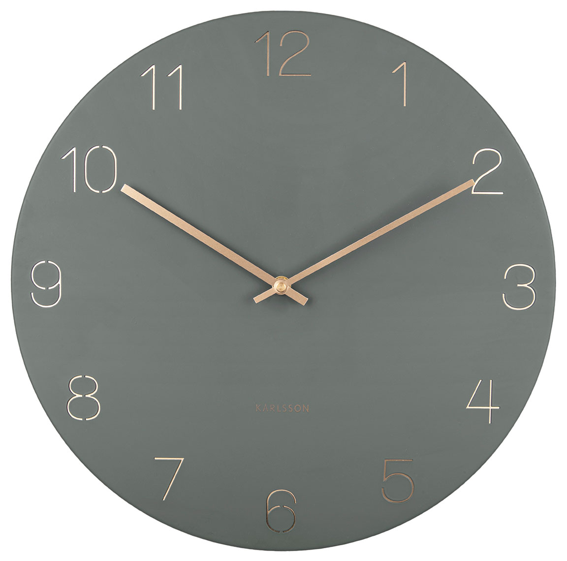 Karlsson Charm Engraved Numbers KA5762GR on tyylikäs seinäkello suurilla ja selvillä numeroindekseillä. Kellossa on vihreä metallinen kellotaulu, jossa kullanväriset viisarit. Kellon halkaisija on 40 cm. Kello toimii yhdellä AA-paristolla (paristo ei sisälly hintaan). Karlsson-kelloilla on kahden vuoden takuu.