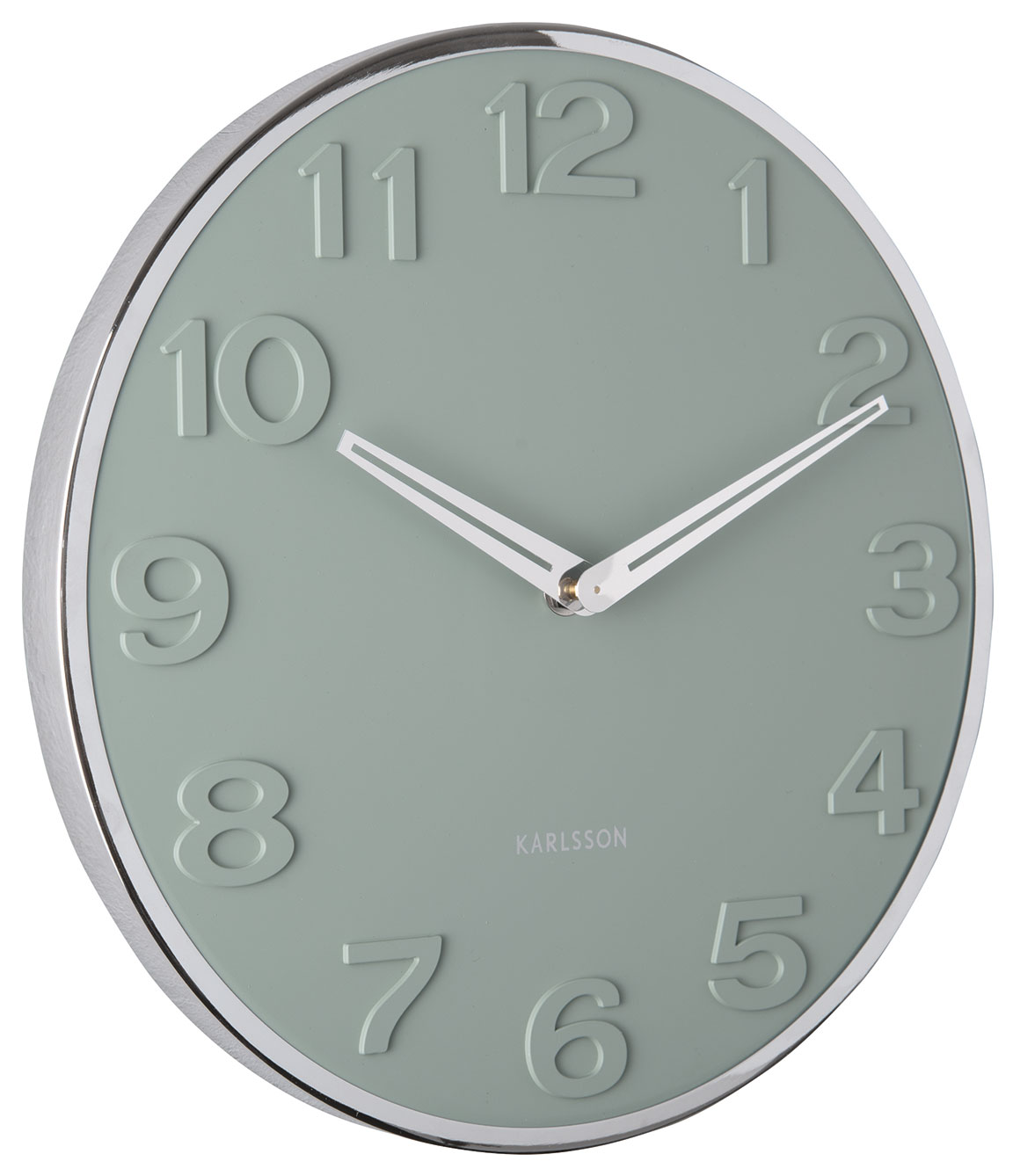Karlsson New Original Number KA5759GR on suuri ja selkeä seinäkello. Tämä vihreällä kellotaululla varustettu seinäkello on valmistettu teräksestä. Kellossa on isot numeroindeksit ja sen halkaisija on 30 cm. Kello toimii yhdellä AA-paristolla (paristo ei sisälly hintaan). Karlsson-kelloilla on kahden vuoden takuu.