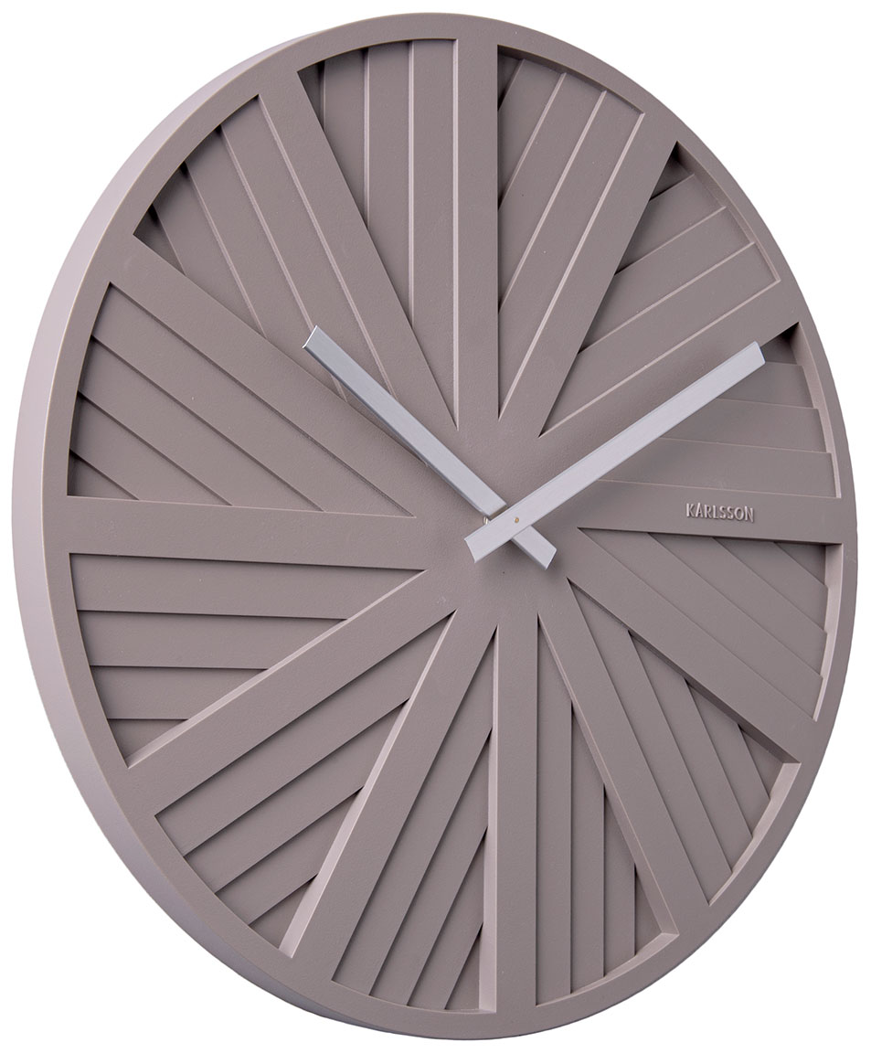Karlsson Slides KA5839GY lämpimän harmaa seinäkello 40 cm on modernisti kuvioitu kello hopeanvärisillä osoittimilla. Kellon halkaisija on 40 cm ja se on 2,5 cm paksu. Kello toimii yhdellä AA-paristolla (paristo ei sisälly hintaan). Karlsson-kelloilla on kahden vuoden takuu.