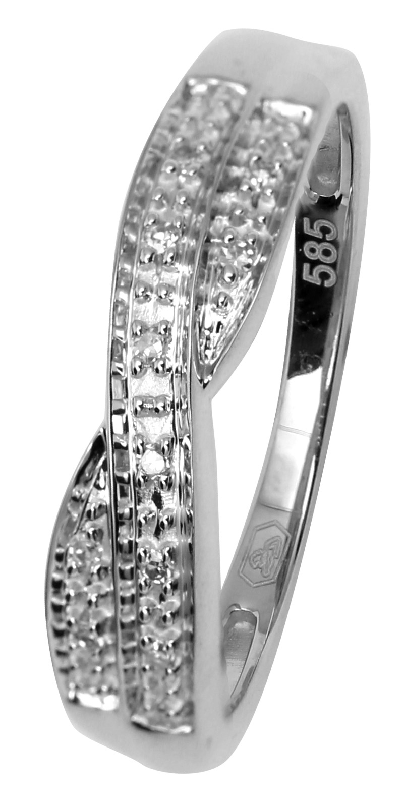Kohinoor 033-P1926V timanttisormukseen on upotettu 10 briljantinmuotoista timanttia kauniilla pavé-tyylisellä istutuksella. Tämä luo sormukselle ajatonta tyyliä, ja syvyyttä ja ylellistä tuntua. 14 karaatin kullasta valmistettu valkokultasormus toimitetaan valmistajan alkuperäisessä rasiassa.