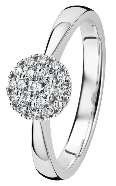 Kohinoorin Dharman 033-412V-28 on näyttävä halosormus ja se on valmistettu 14k valkokullasta. Sormuksen 19 timanttia on istutettu kukan muotoon ja jokeinen timanteista on kauniisti briljanttihiottu. Timanttien yhteispaino on 0,28 ct ja puhtausluokitus SI. Korun muotoiltu 2,5 mm:iä leveä flakkarunko kapenee kohti timanttiupotusta. Sormuksen on suunnitellut Sami Laatikainen ja se on valmistettu Suomessa. Kohinoor sormukset toimitetaan valmistajan alkuperäisessä rasiassa ja niille myönnetään vuoden takuu.