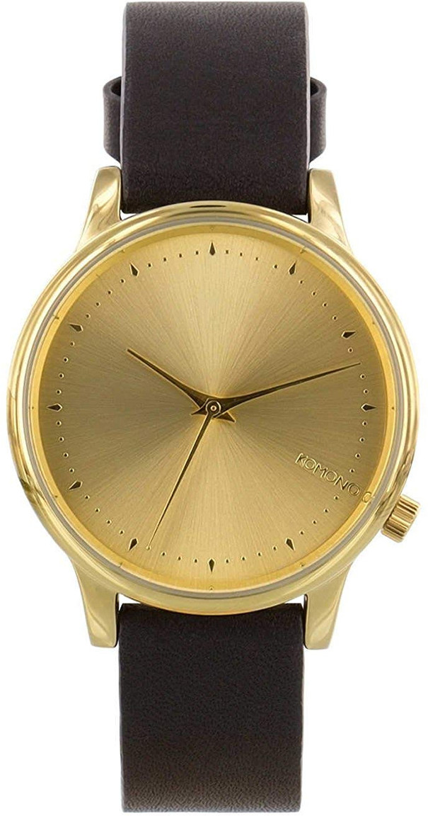 Belgialainen Komono tunnetaan upean kirjavasta kellovalikoimastaan, jossa tämä Estelle-malli asettuu ehdottomasti sinne hillitympään päähän. Kullanvärinen runko on halkaisijaltaan 36 mm ja sen kellotaulussa on kaunis sunburst-pinta. 16 mm leveä musta ranneke on materiaaliltaan aitoa nahkaa. Kellossa on luotettava japanilainen koneisto. Toimitus valmistajan alkuperäisessä rasiassa.