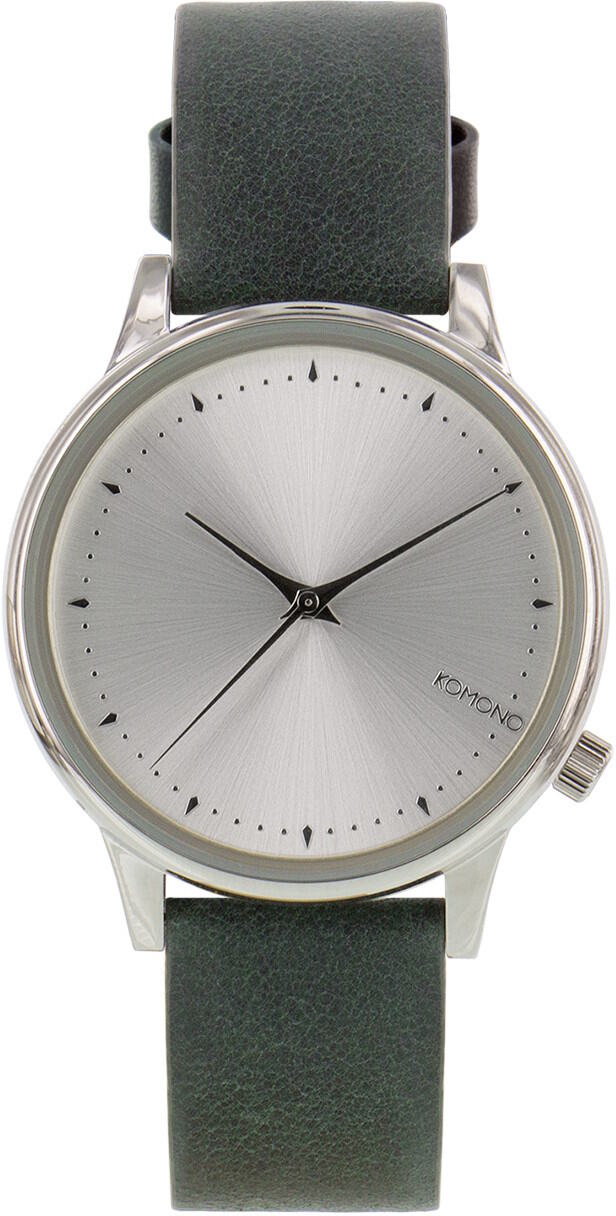 Naisten Komono Estelle Classic Teal W2451 rannekellossa on hopeanvärinen runko ja kellotaulu. Kellon rungon leveys on 36 mm ja paksuus 8 mm. Aidon nahkarannekkeen leveys kiinnityskohdasta on 16 mm. Komono-kellojen koneistoille myönnetään valmistajan virallinen yhden vuoden takuu. Valmistajan takuu ei korvaa kellon rungon ja rannekkeen kulumista käytössä. Komono-rannekellot toimitetaan valmistajan alkuperäisessä rasiassa.